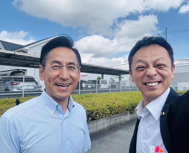 辻谷議員とともに、朝礼から元気にスタートしました!