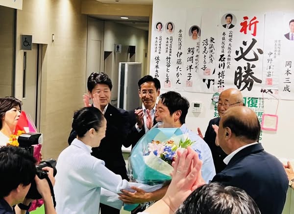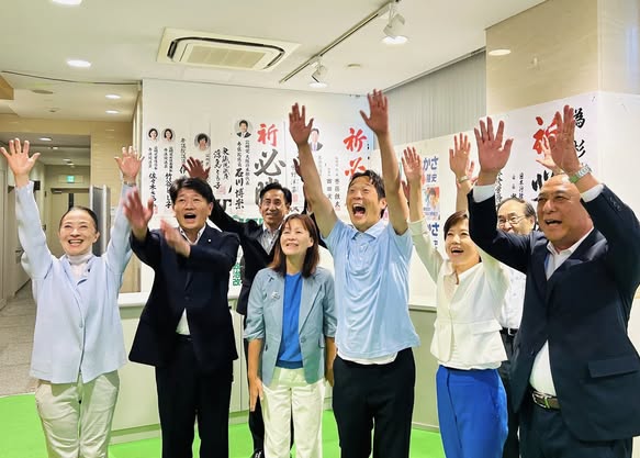 一夜明けて、ようやく届いた吉報✨全国比例・つかさ隆史さん、当確。🎊酷暑も、土砂降りも乗り越え、近畿一円を走り抜いたつかささん。その情熱が大阪・関西の大きなチカラとなりました。政治を、もっと前へ。ネットワークのチカラで御恩に報いてまいります!
