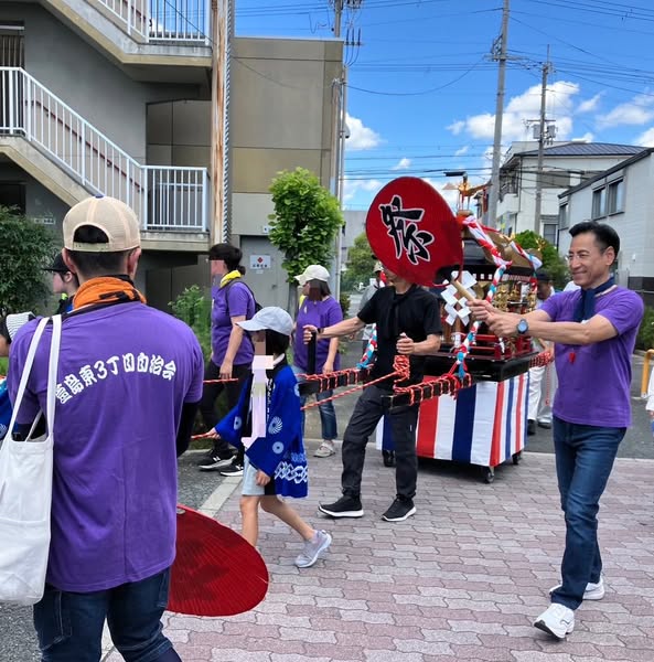 地元・萱島東3丁目を、子ども神輿が元気いっぱいに練り歩きました!