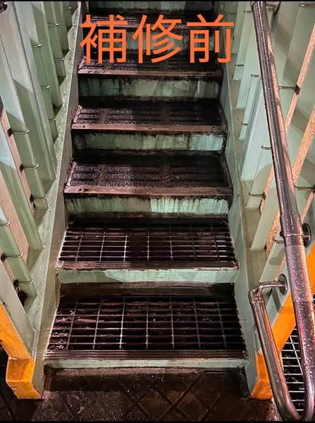京都守口線 池田歩道橋(寝屋川市池田三丁目)の1段目から2段目のコンクリートが劣化し、ハイヒール👠のかかとが、隙間に入るなど、危ない状況にありました。